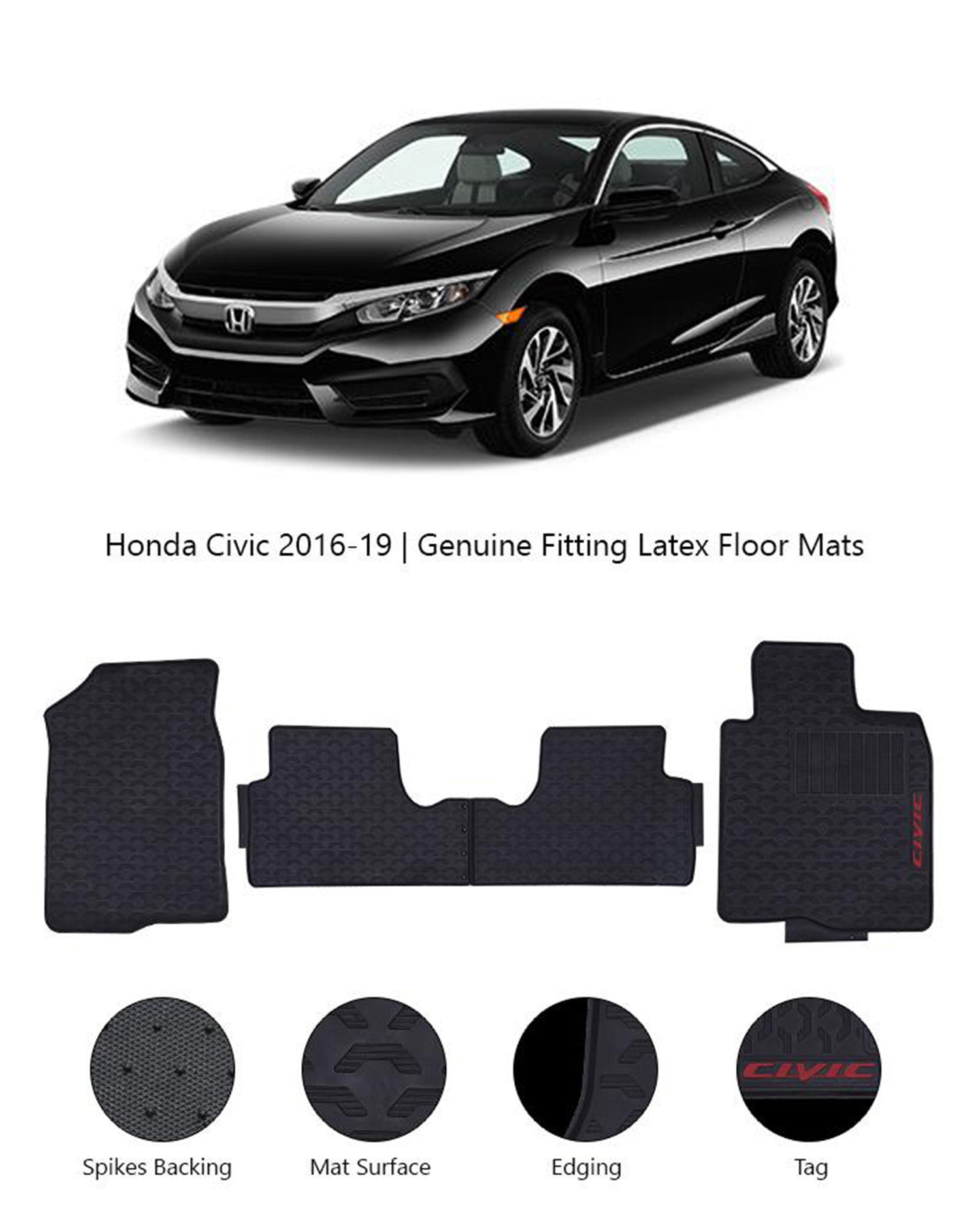 HONDA CIVIC X 2016-2021 LATEX RUBBER CAR FLOOR MAT