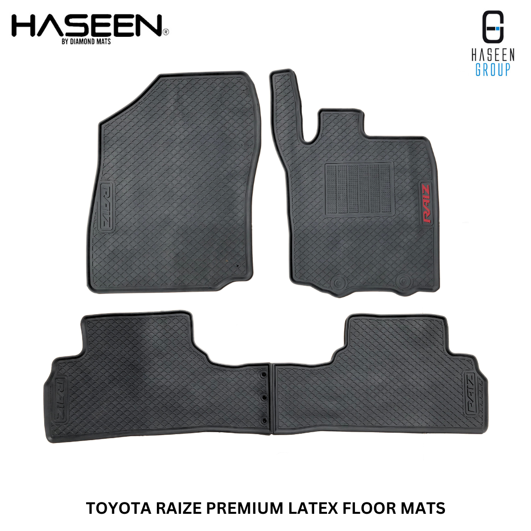 HASEEN LATEXFloor Mats are three time Thicker than Industry Standards. Car Model Logo is IMBOSED along with side tag. A dependable set of Rubber car floor mats protect your vehicle floor from rain and slush.